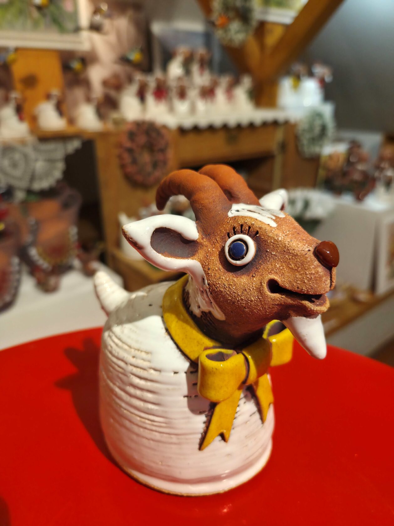Pes malý na dřevěné kostce (celková v 13 cm)
